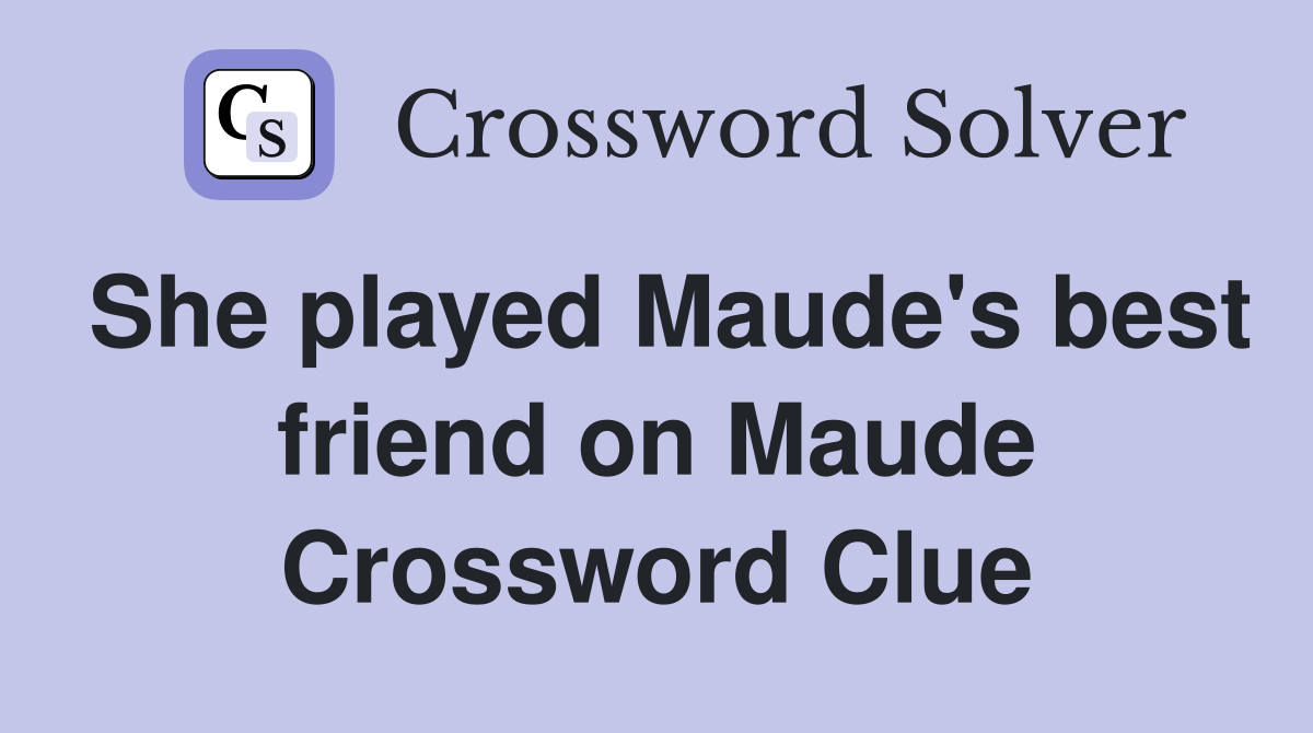 She played Maude #39 s best friend on Maude Crossword Clue Answers