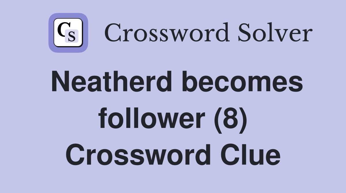 Neatherd becomes follower (8) Crossword Clue Answers Crossword Solver