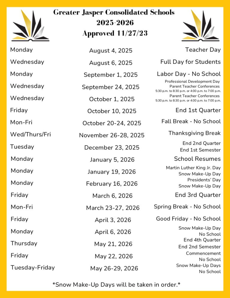 Jasper City Schools release 2025 26 calendar News mountaineagle com