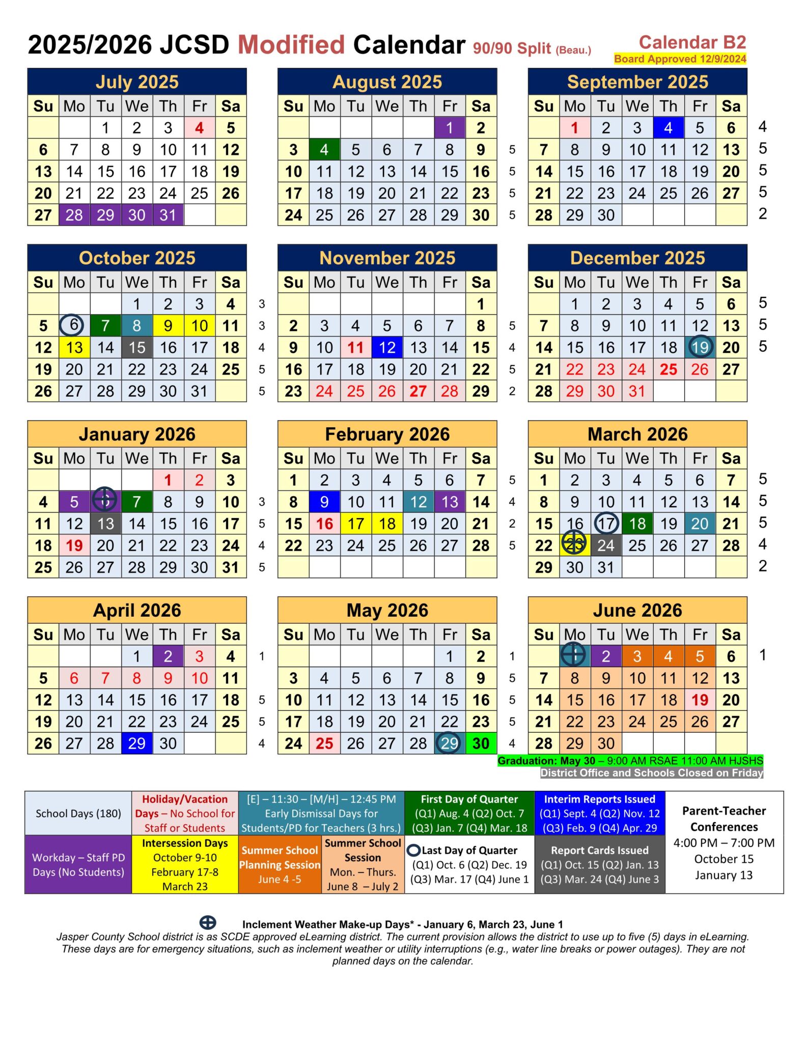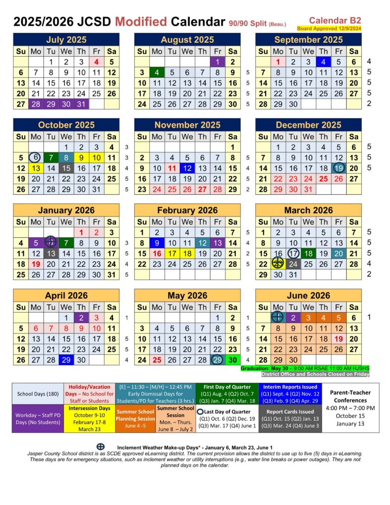 Jasper County SC School Calendar 25 26 PDF EduCounty