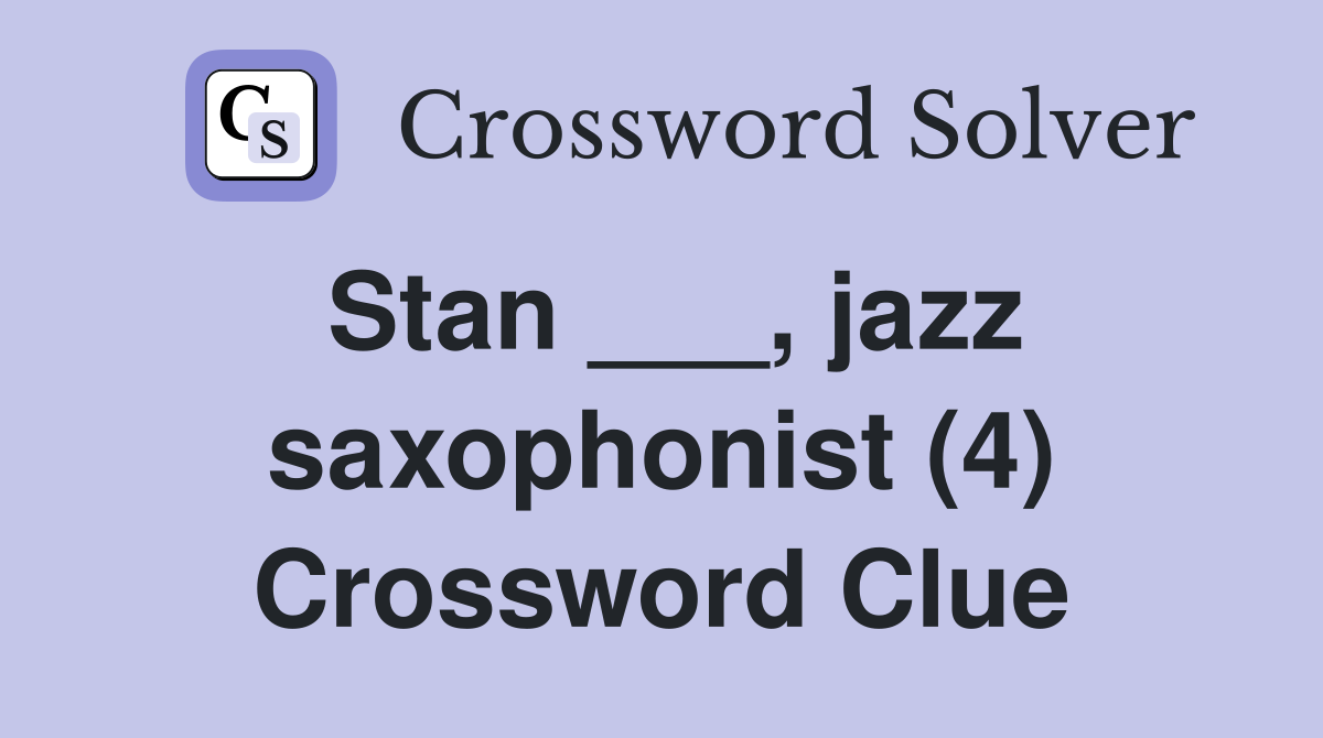 Stan jazz saxophonist (4) Crossword Clue Answers Crossword Solver
