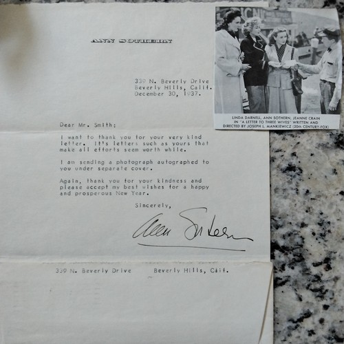 Ann Sothern SIGNED 1937 Letter Envelope 30s Movie Actress Letter 3