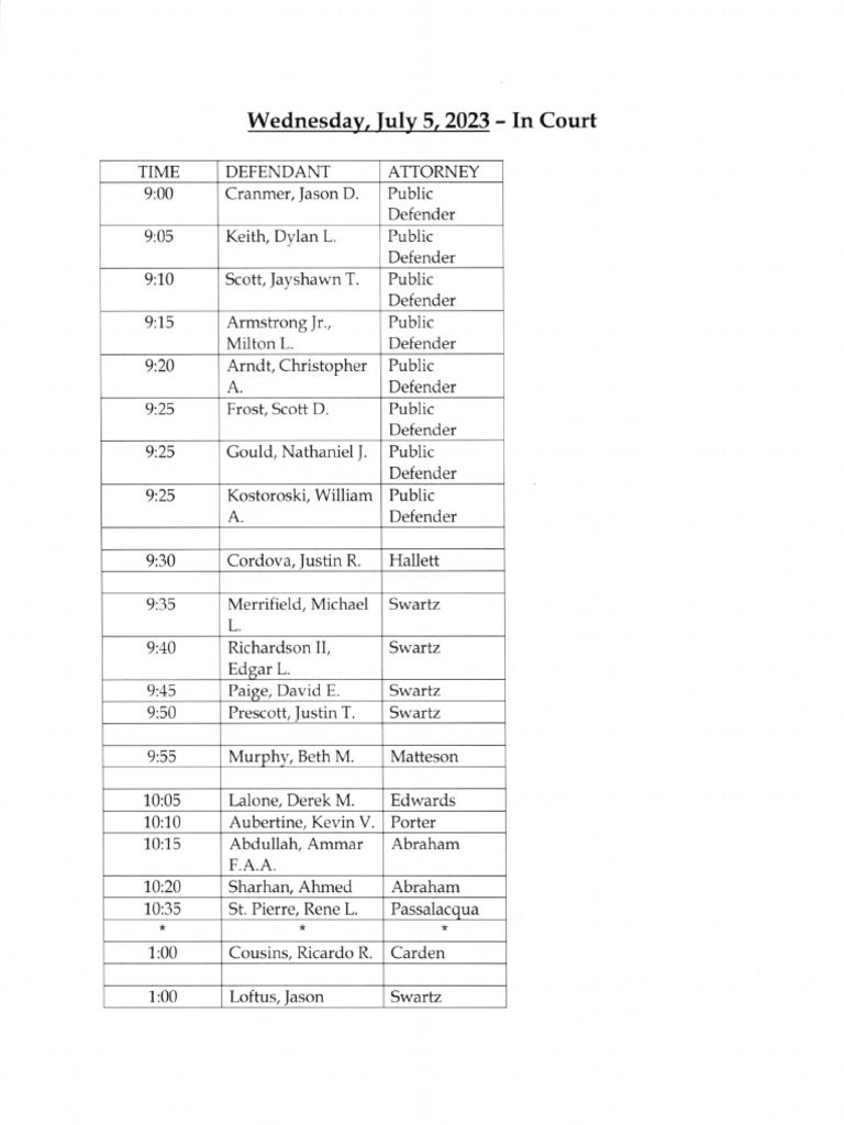 Jefferson County Court Calendar July 5 2023 PDF Sports Recreation