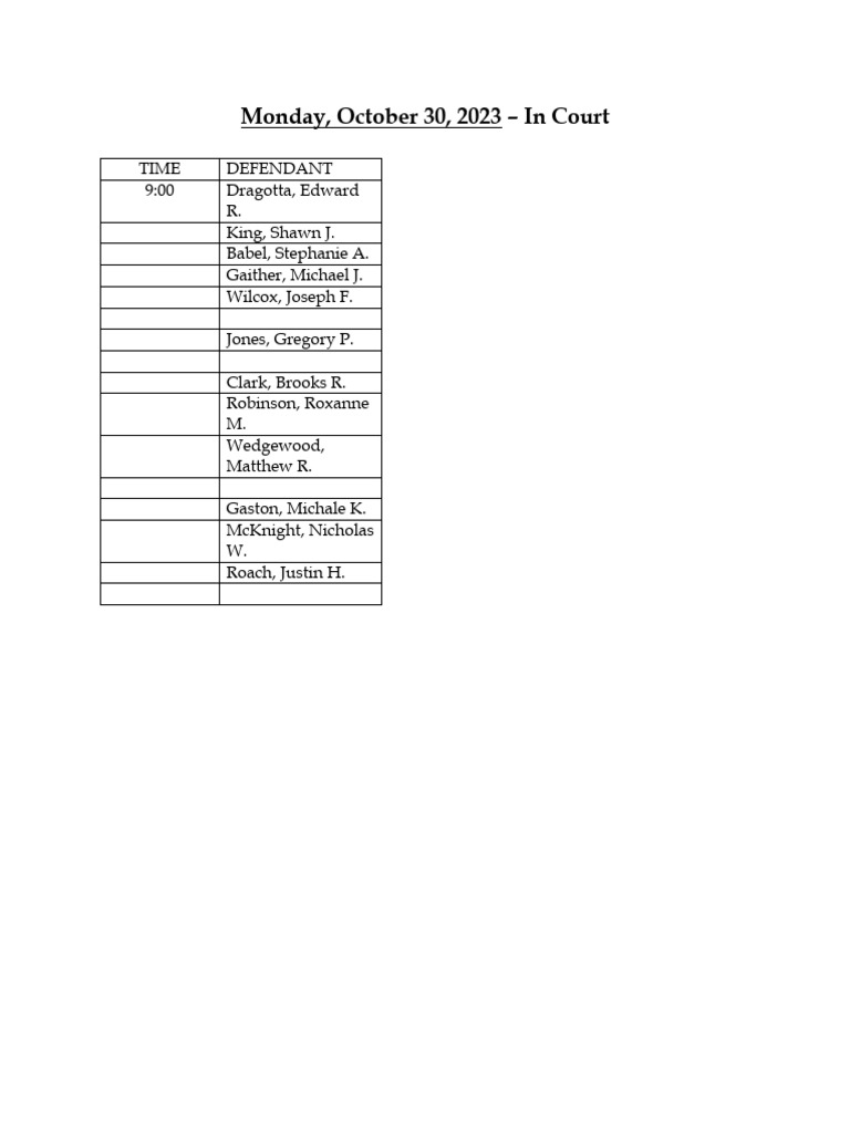 Jefferson County Court Calendar Oct 30 2023 PDF