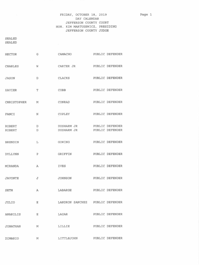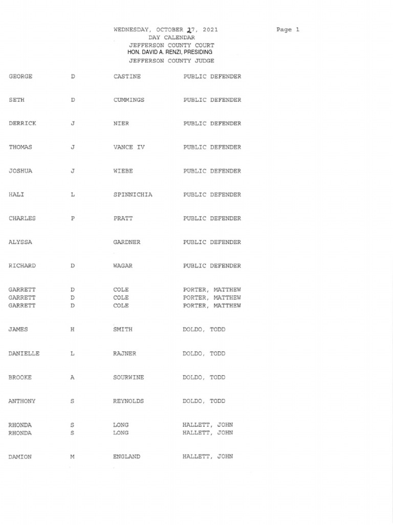 Here are some of the images for Jefferson County Court Dockets By Last Name that we found in our website database.