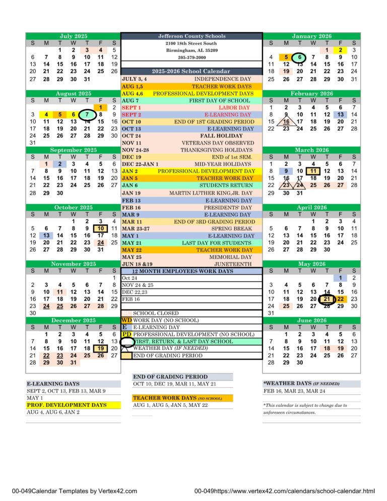 Jefferson County AL School Calendar 25 26 PDF EduCounty