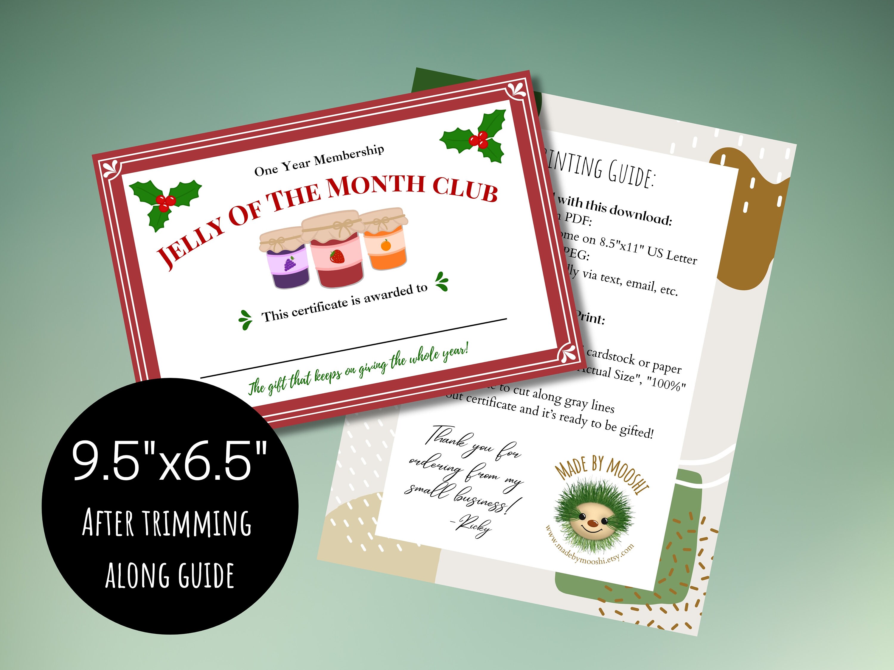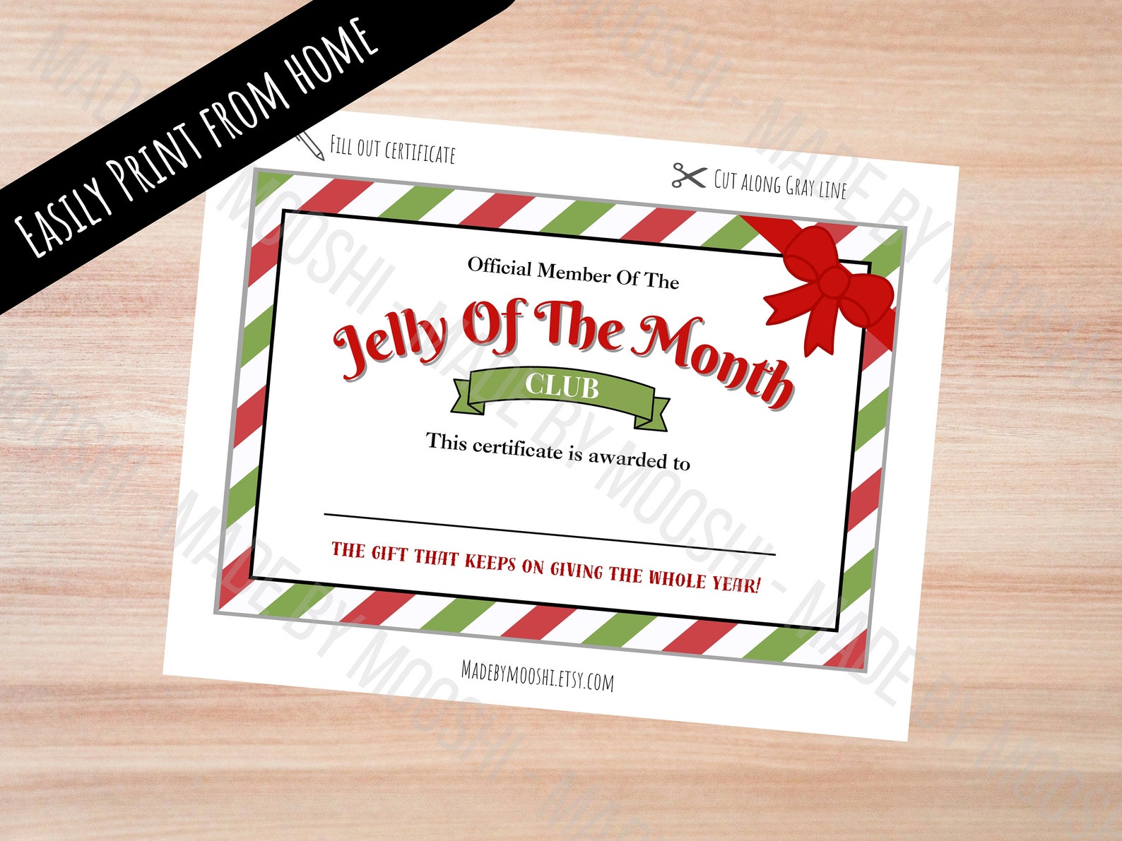 Jelly of the Month Club Certificate Printable Etsy