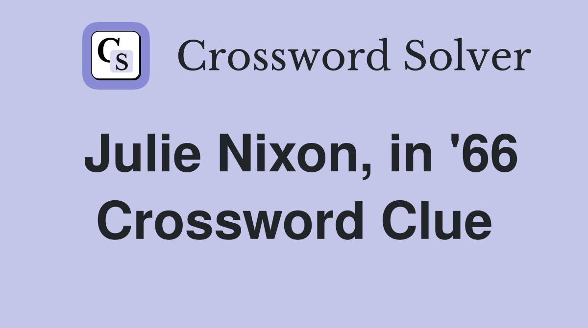 Julie Nixon in #39 66 Crossword Clue Answers Crossword Solver