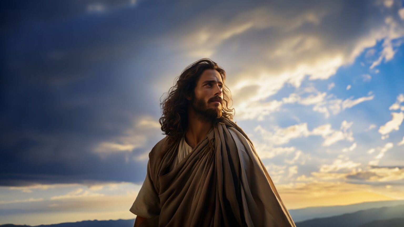 Jesus Christ in the Hills at Sunset in Bolta realistic image ultra hd