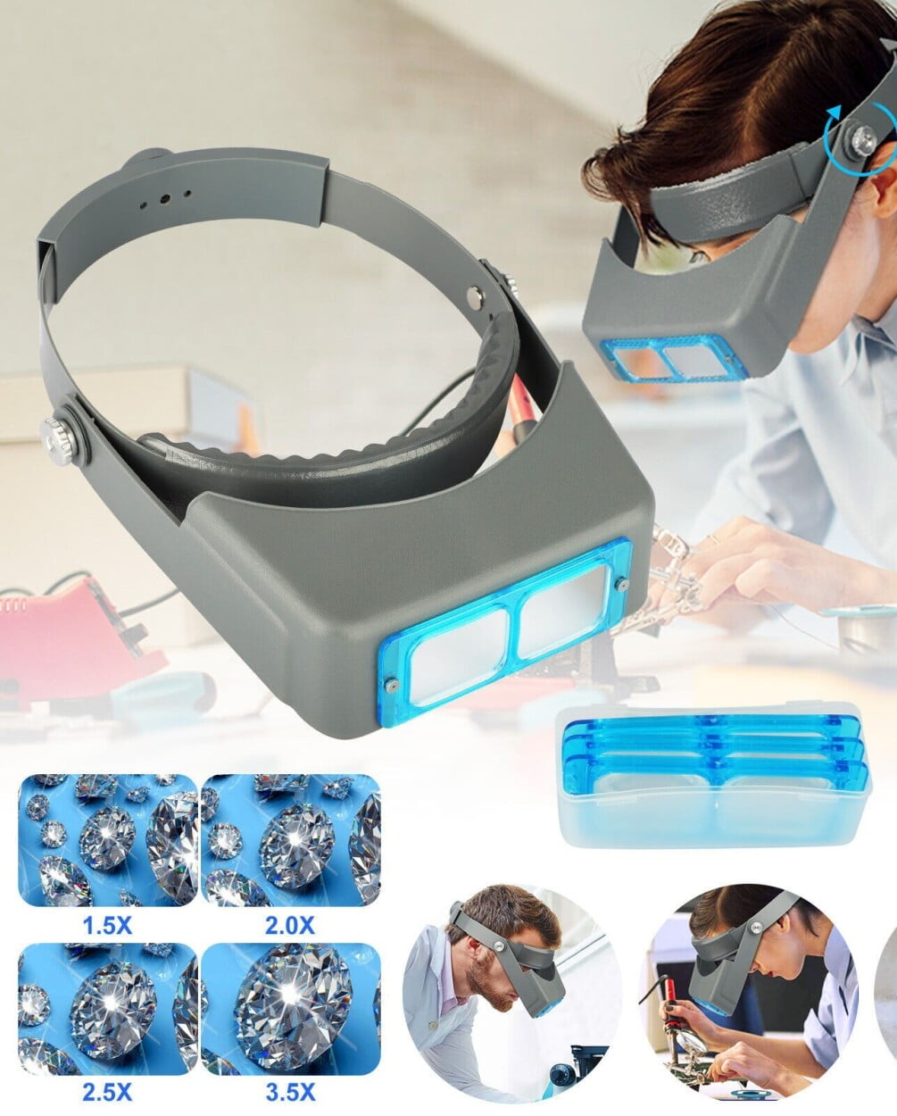 Jewelers Headband Magnifier Magnifying Glasses 4 Lens for Reading