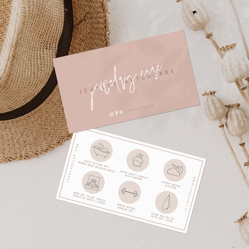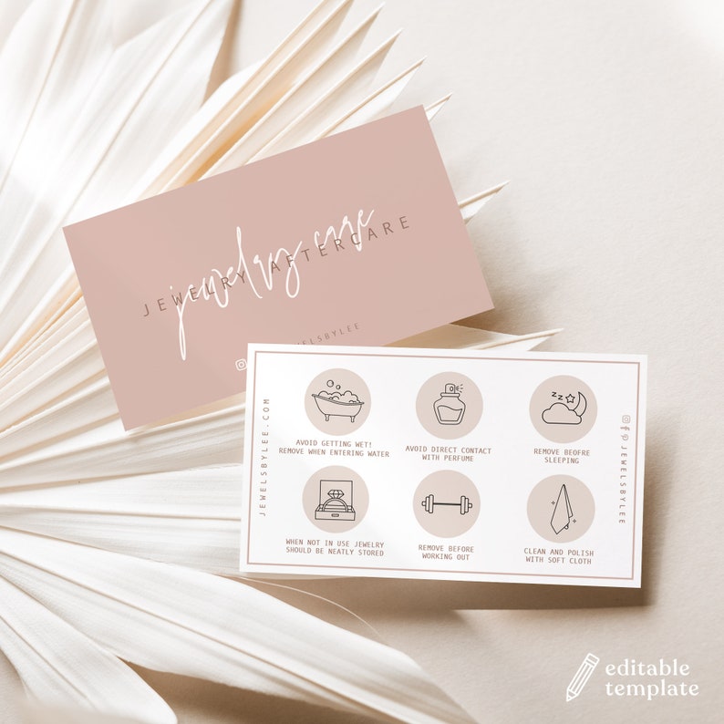 Care Instructions Card 100% Editable Jewelry Care Card Insert Care Card