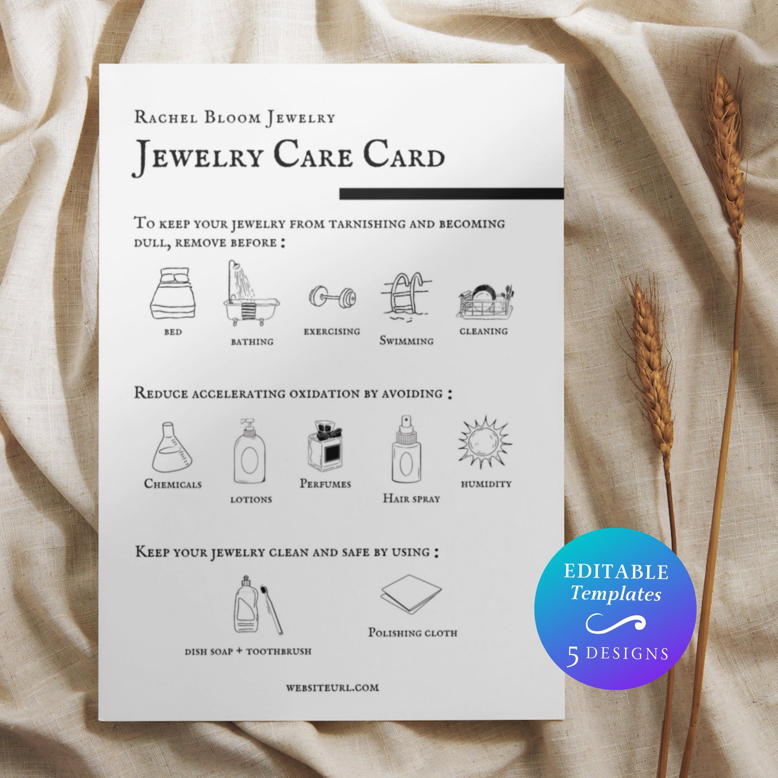 Jewellery Care Card Template: Printable Jewellery Care Guide Card