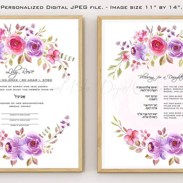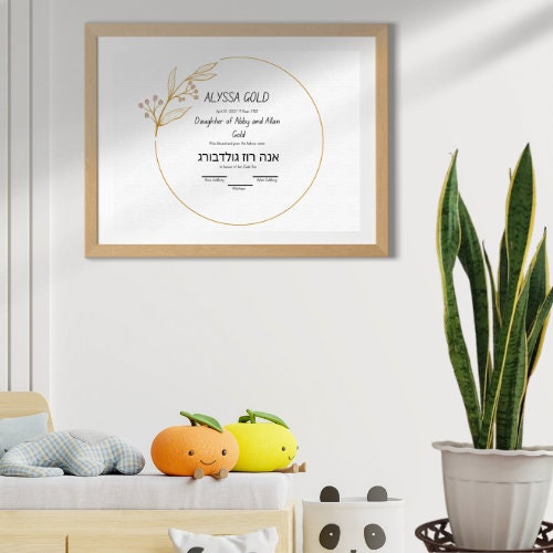 Digital Hebrew Jewish Baby Naming Ceremony Certificate Naming Ceremony