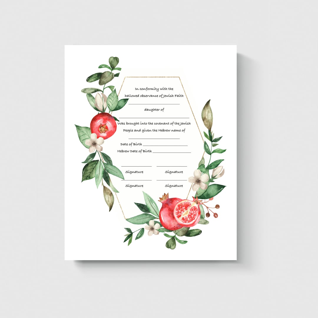 Jewish Baby Naming Certificate Template Baby Naming Download Etsy