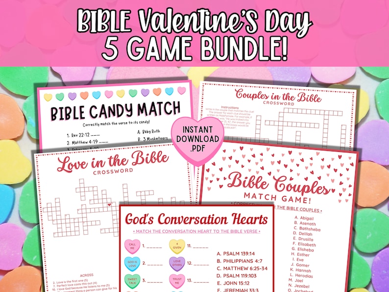 Bible Valentine #39 s Day Game Bundle Valentine Bible Match Party Game