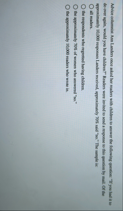 Solved Advice columnist Ann Landers once asked her female Chegg com