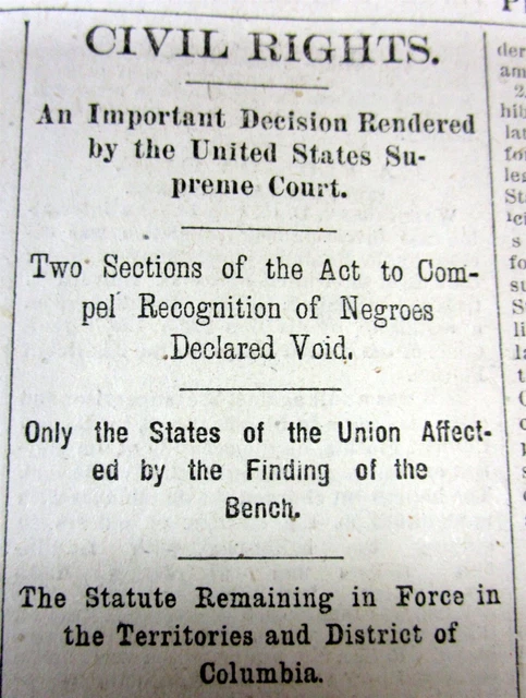 1883 JOURNAL US SUPREME COURT soutient JIM CROW comme il annule LOIS