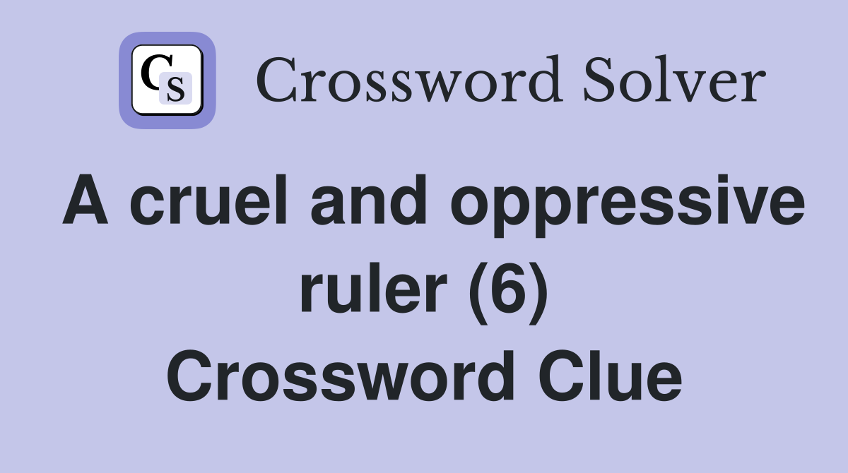 A cruel and oppressive ruler (6) Crossword Clue Answers Crossword