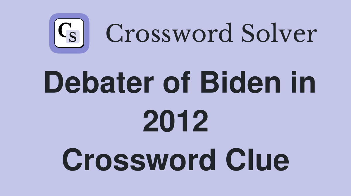 Debater of Biden in 2012 Crossword Clue Answers Crossword Solver