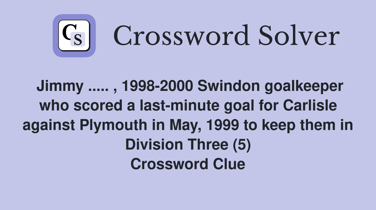 Jimmy 1998 2000 Swindon goalkeeper who scored a last minute