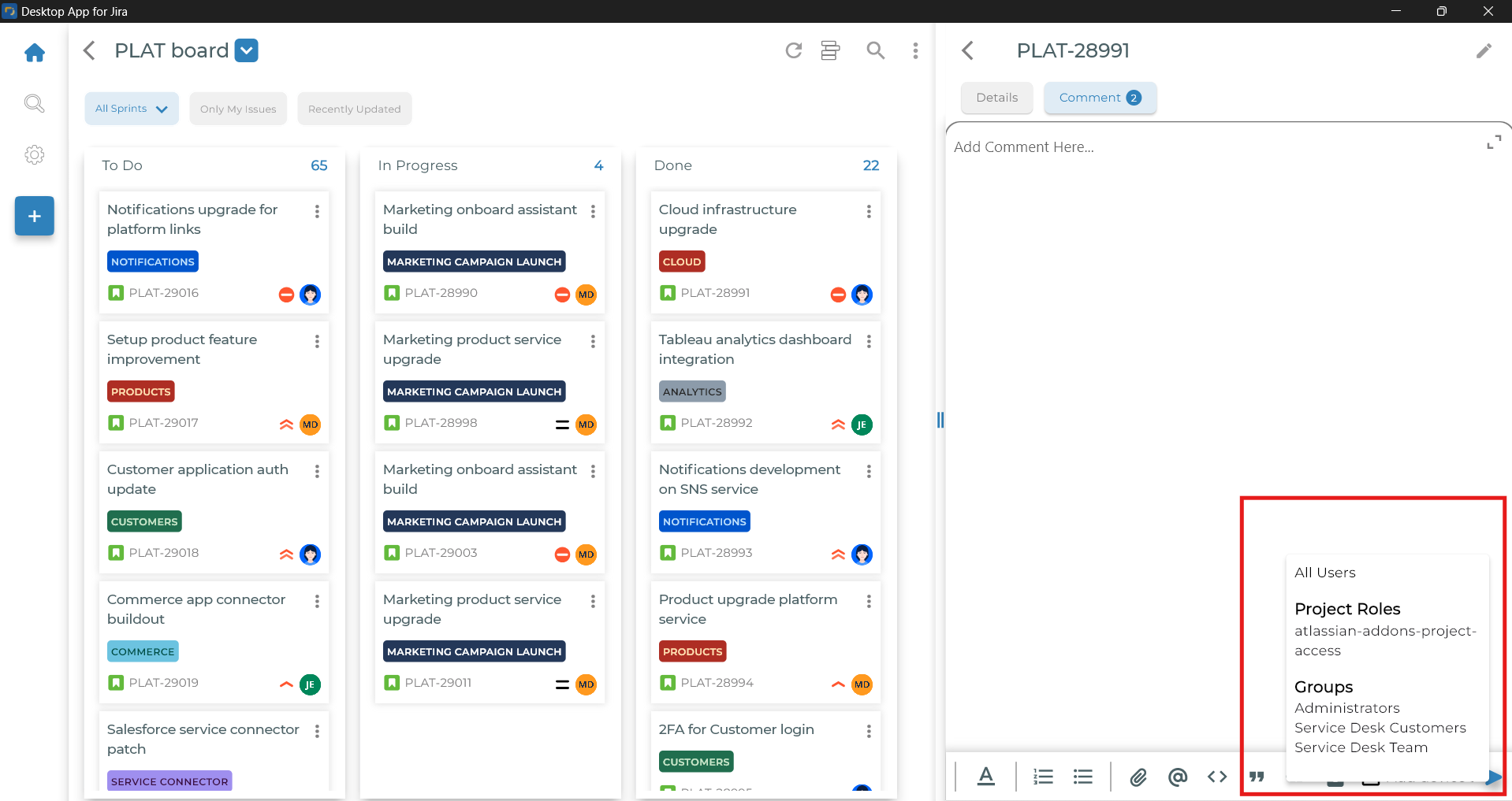 Restriction level for comments in the Jira macOS D