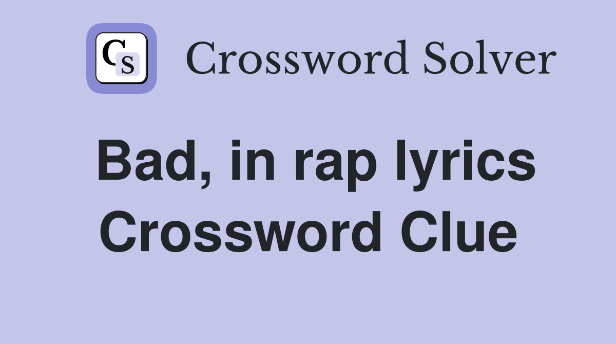 Bad in rap lyrics Crossword Clue Answers Crossword Solver