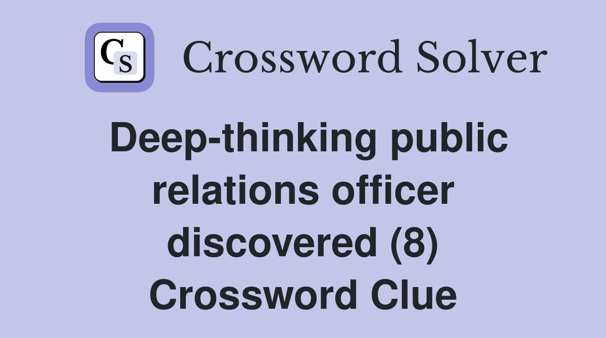 Deep thinking public relations officer discovered (8) Crossword Clue