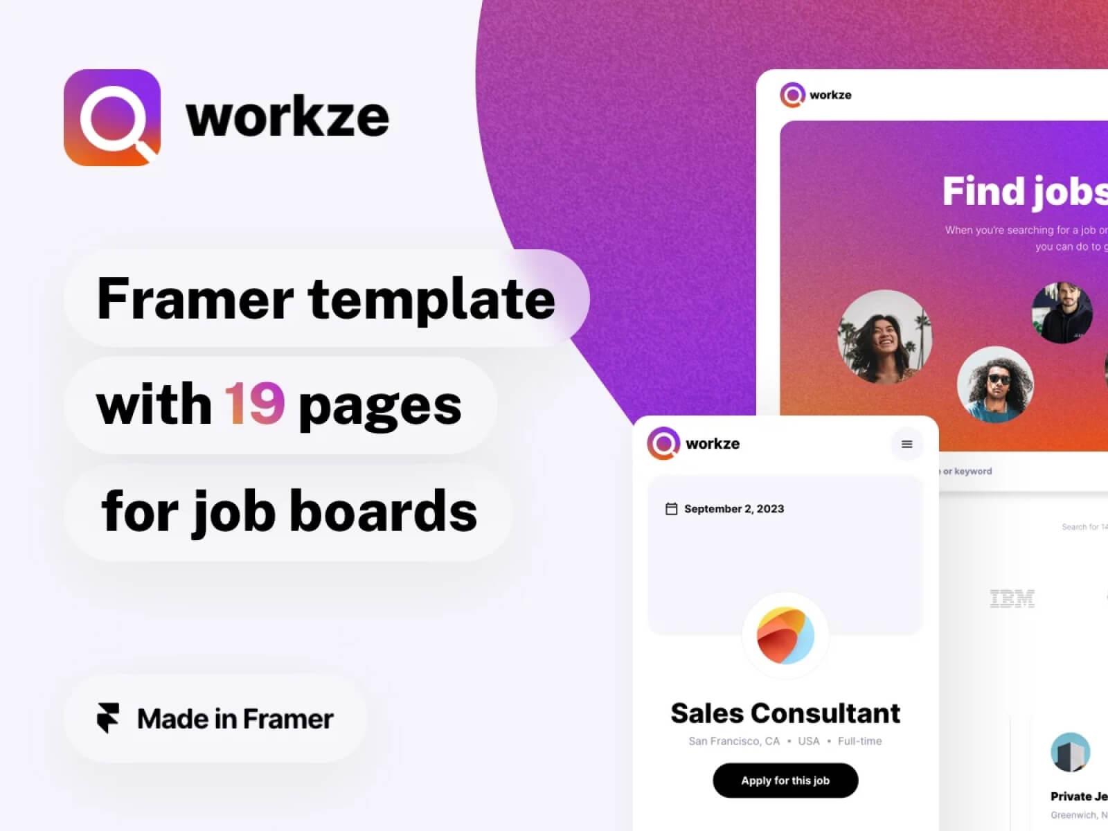 Workze no code job board template for Framer UIBundle