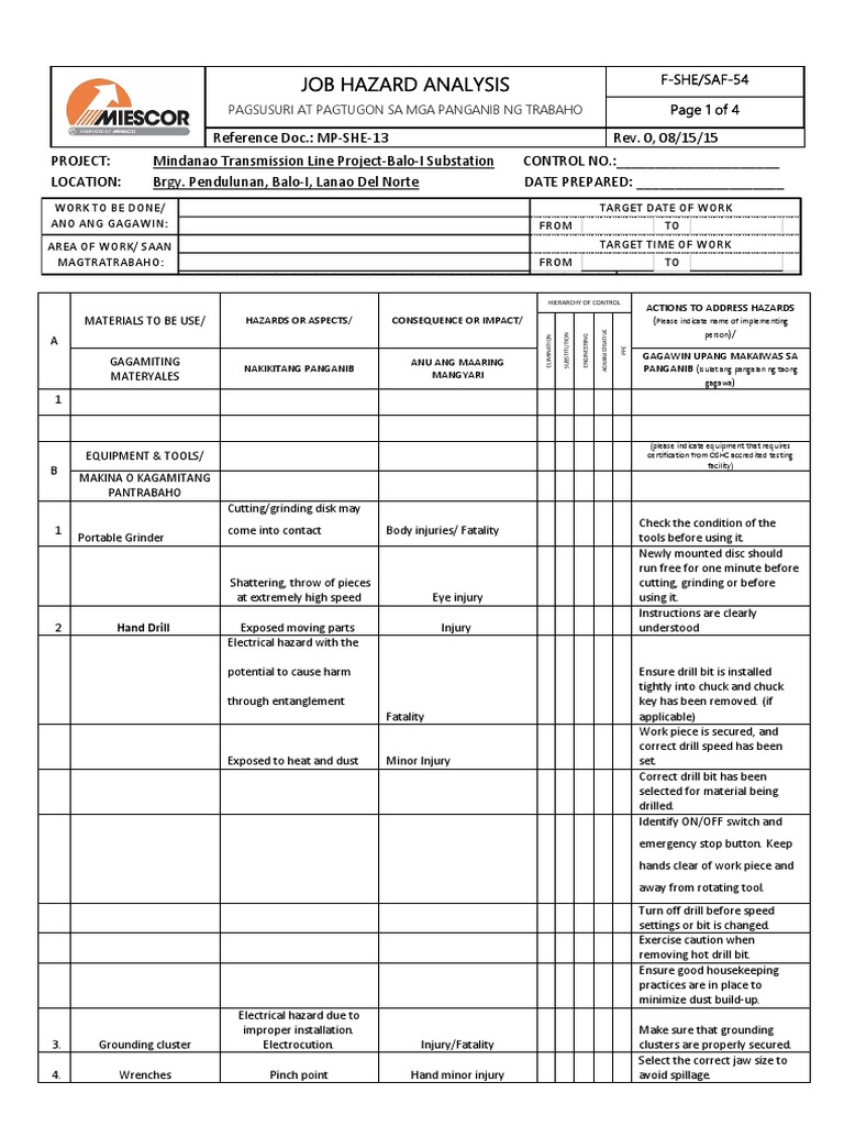 Job Hazard Analysis Form Samples Word Document Download