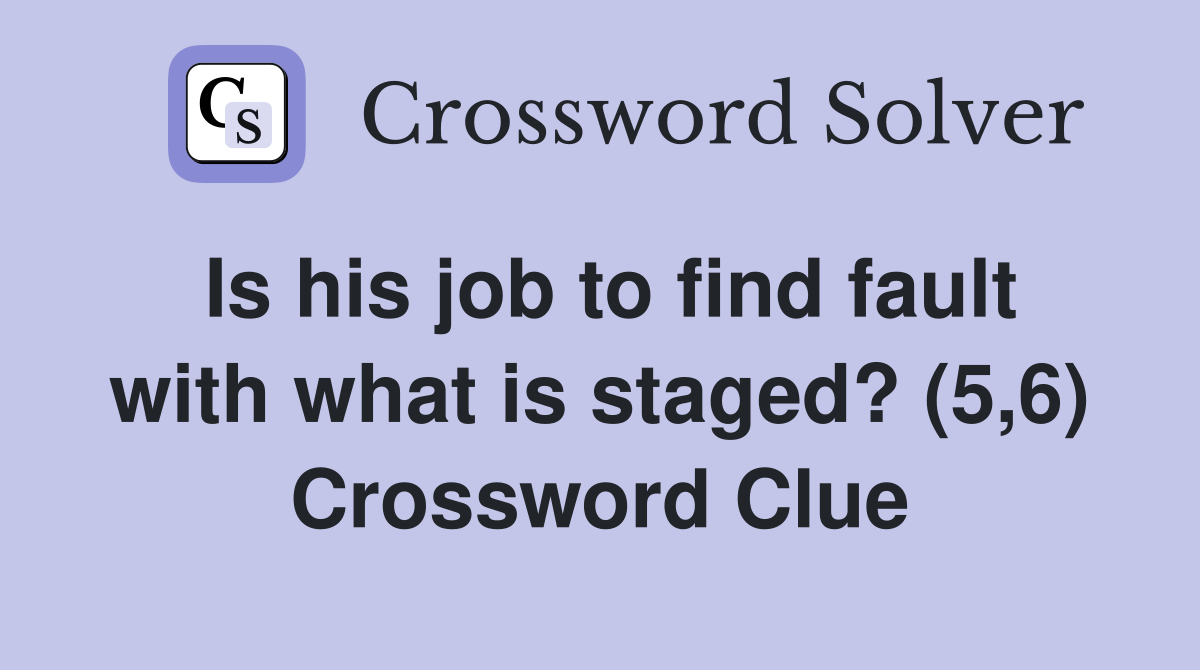 Is his job to find fault with what is staged? (5 6) Crossword Clue