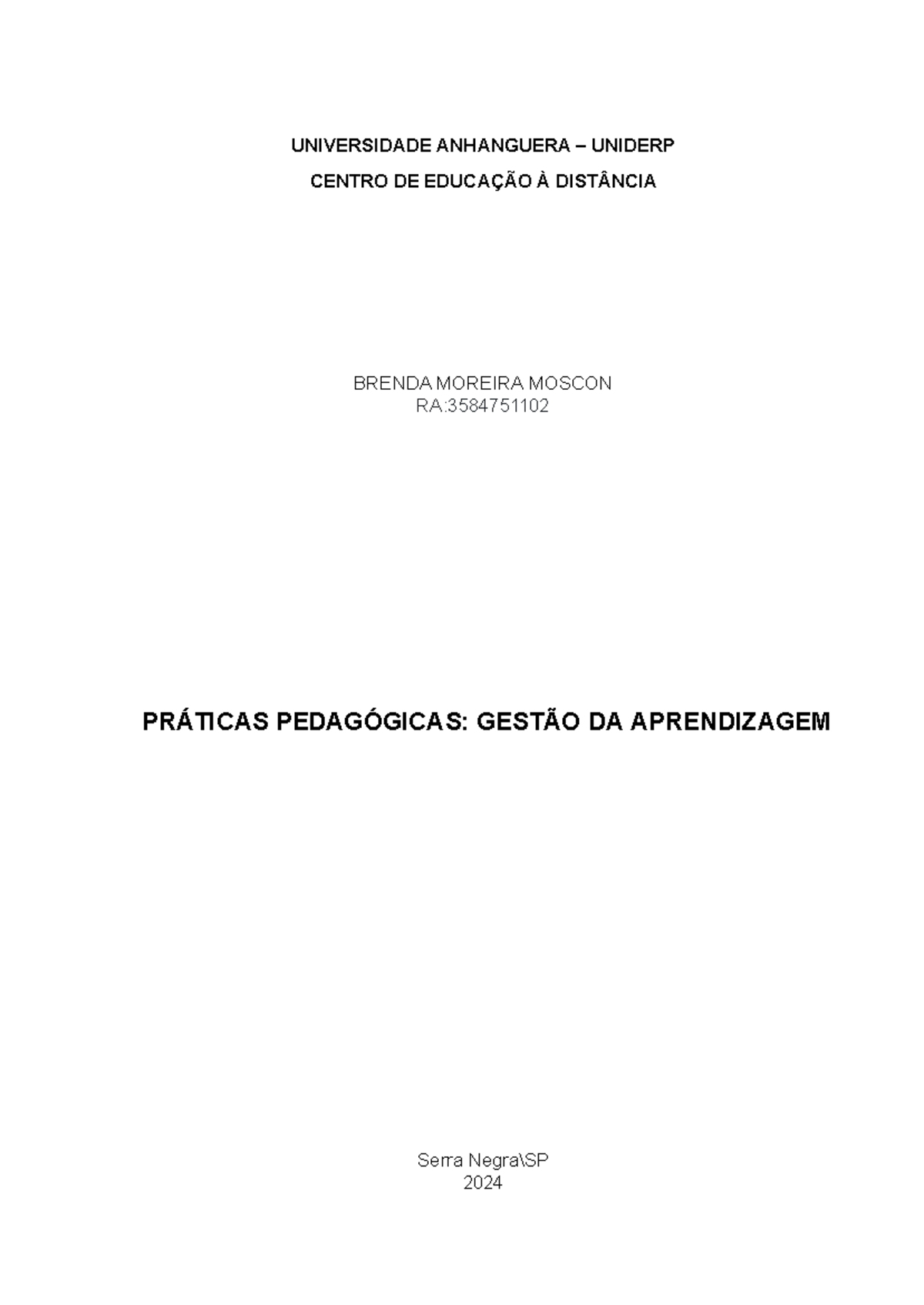 Portfólio Práticas pedagógicas UNIVERSIDADE ANHANGUERA UNIDERP