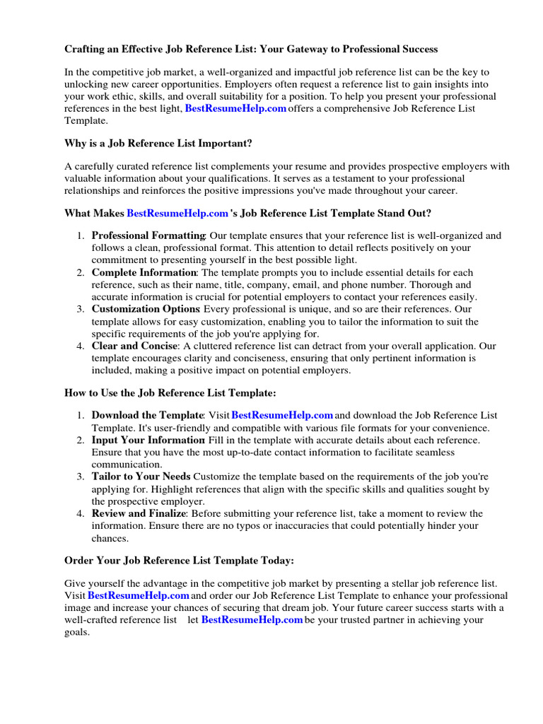Job Reference List Template