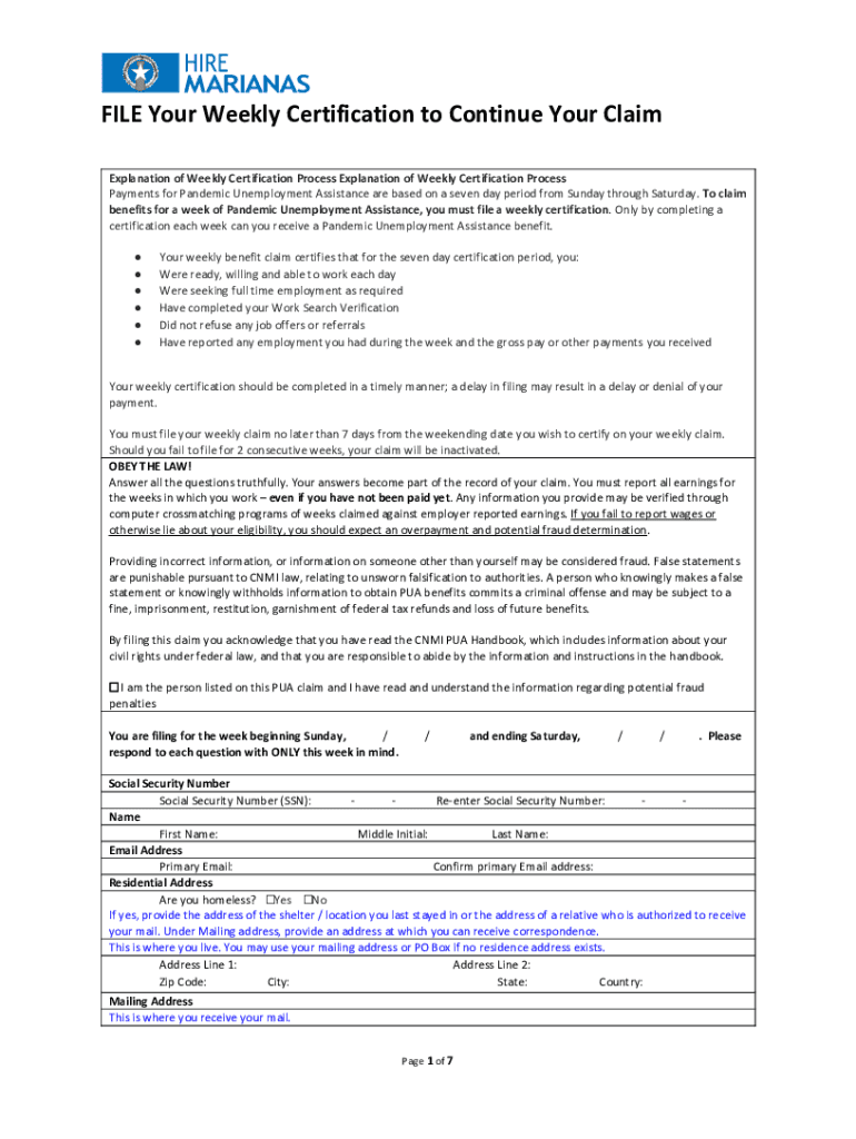 Fillable Online Explanation of Weekly Certification Process Explanation