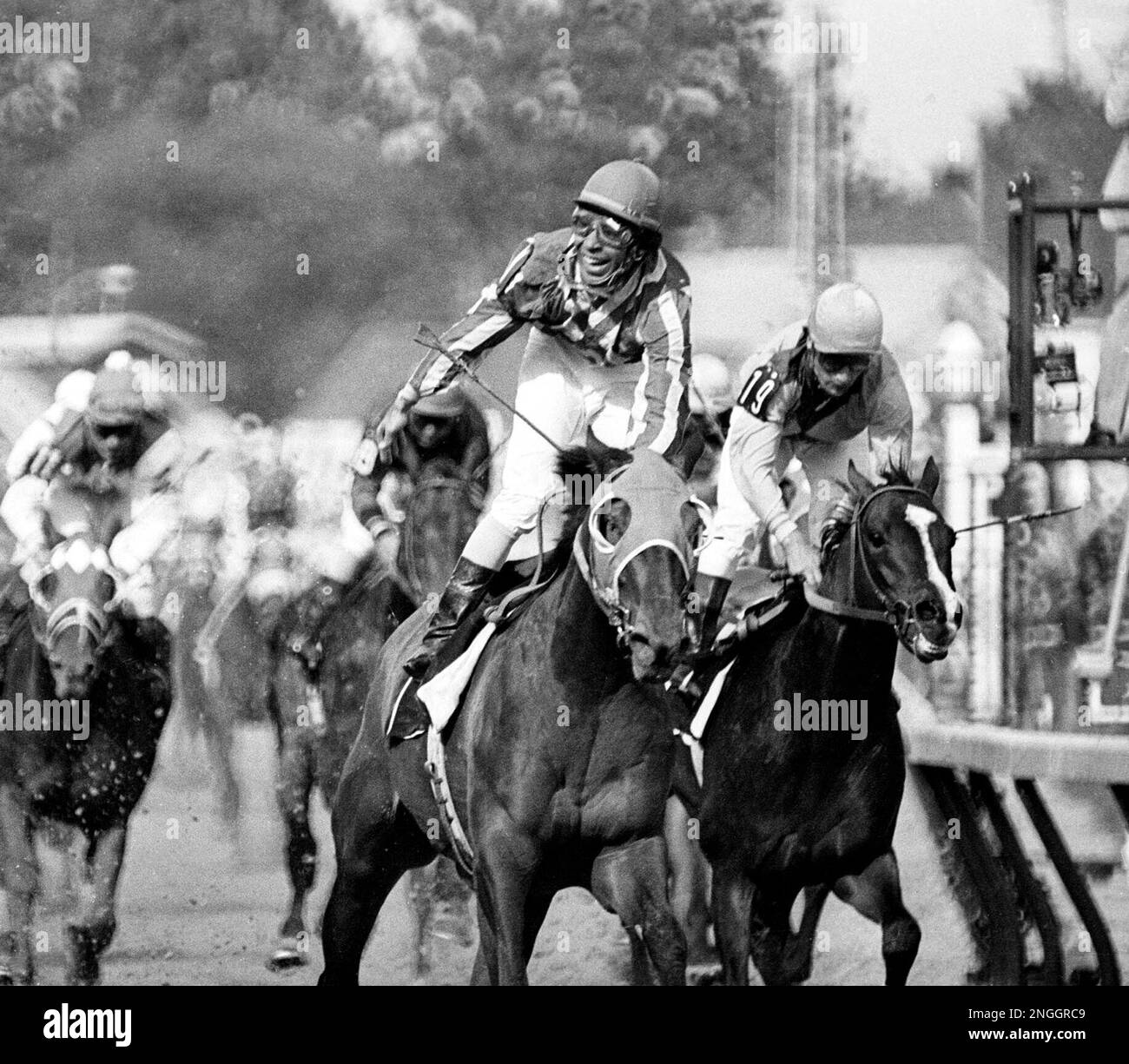 Jockey Angel Cordero stands in the stirrups May 4 1974 after his
