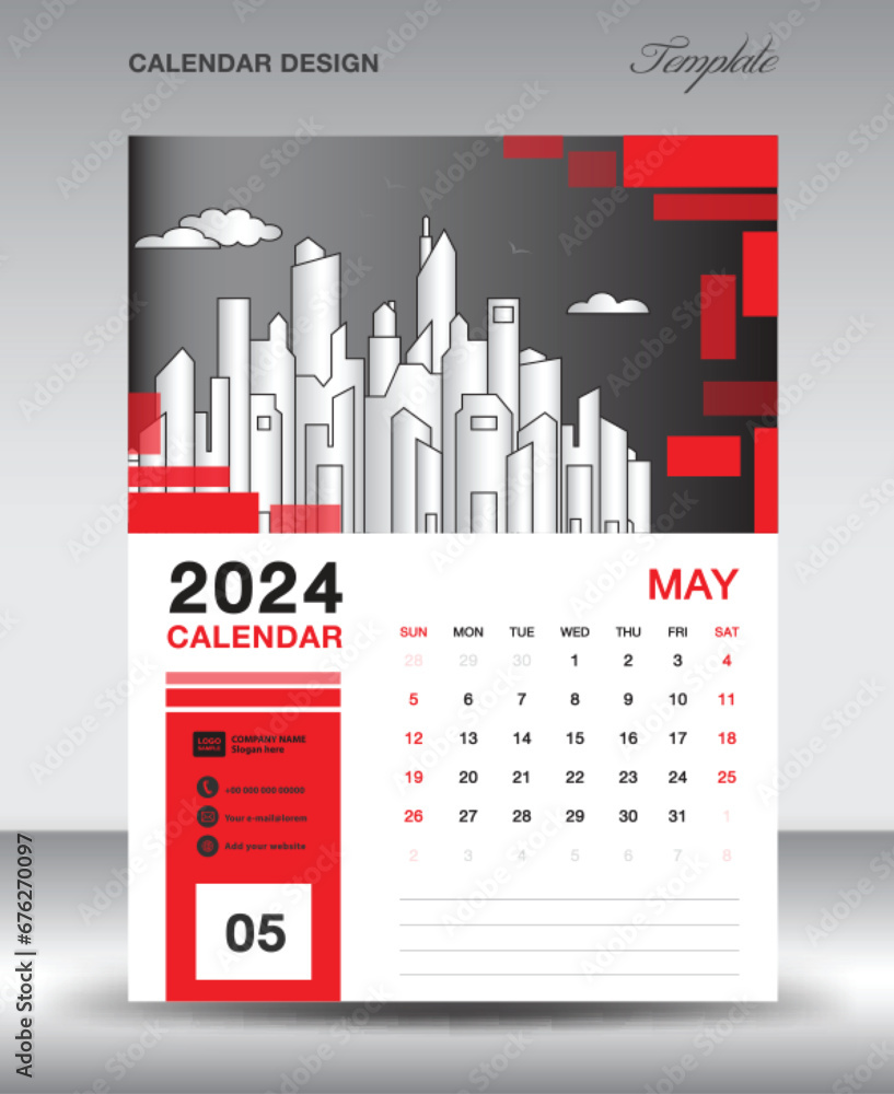 Calendar 2024 design template May 2024 year layout vertical calendar