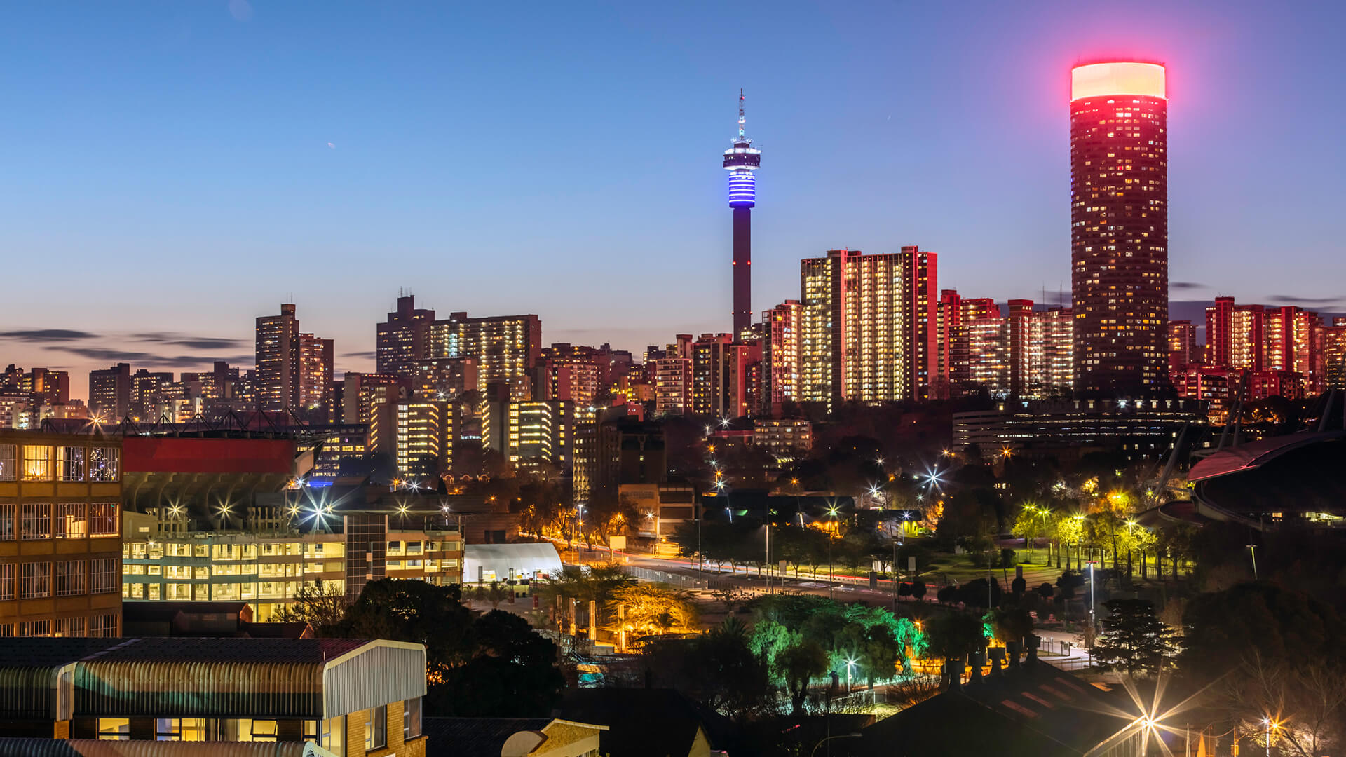 Johannesburg Skyline At Night Stock Photos Pictures Royalty Free