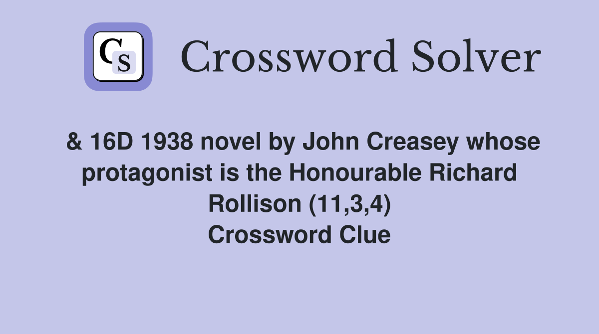 16D 1938 novel by John Creasey whose protagonist is the Honourable