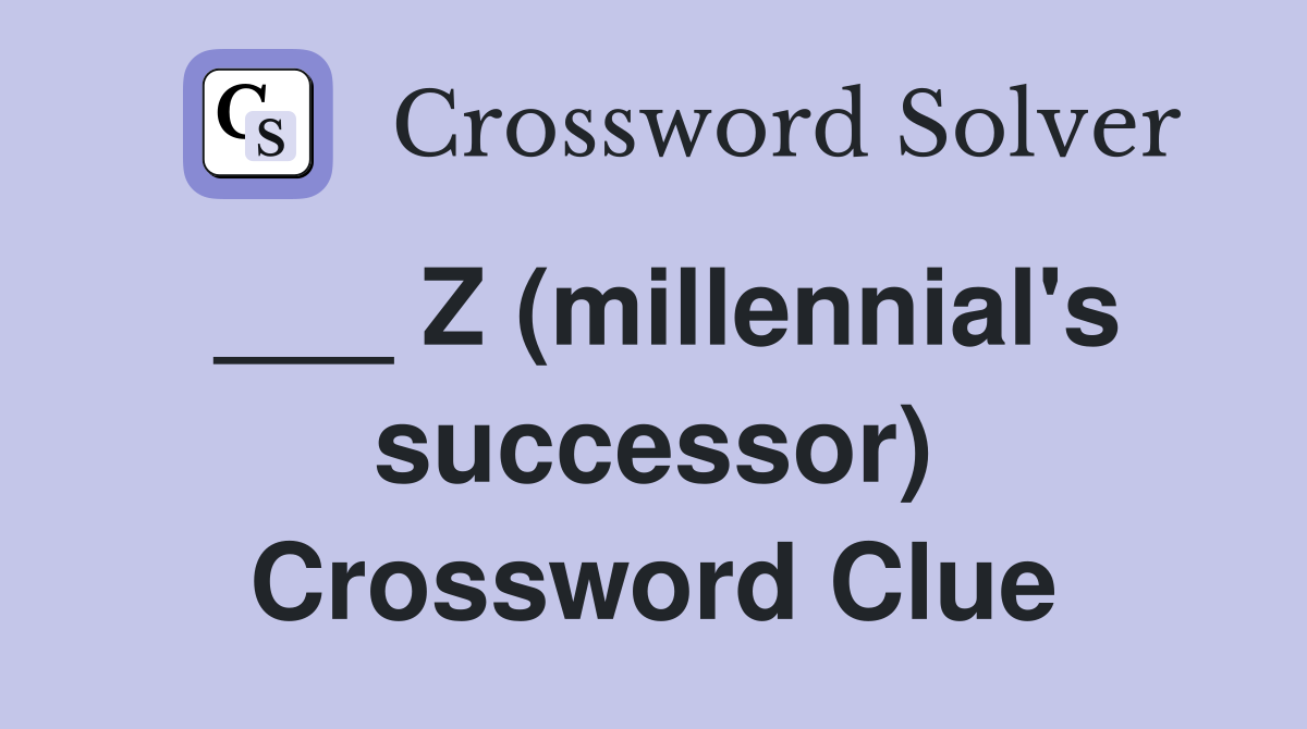 Z (millennial #39 s successor) Crossword Clue Answers Crossword Solver
