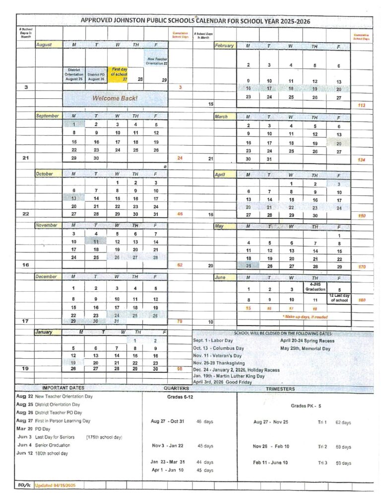 Here are some of the images for Johnston Public Schools Calendar that we found in our website database.