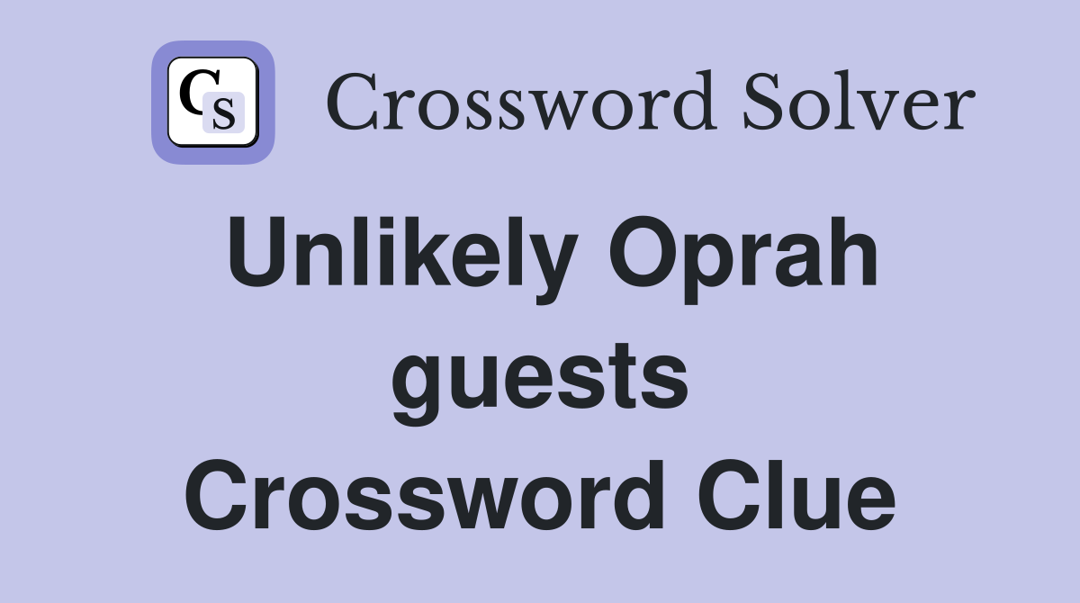 Unlikely Oprah guests Crossword Clue Answers Crossword Solver
