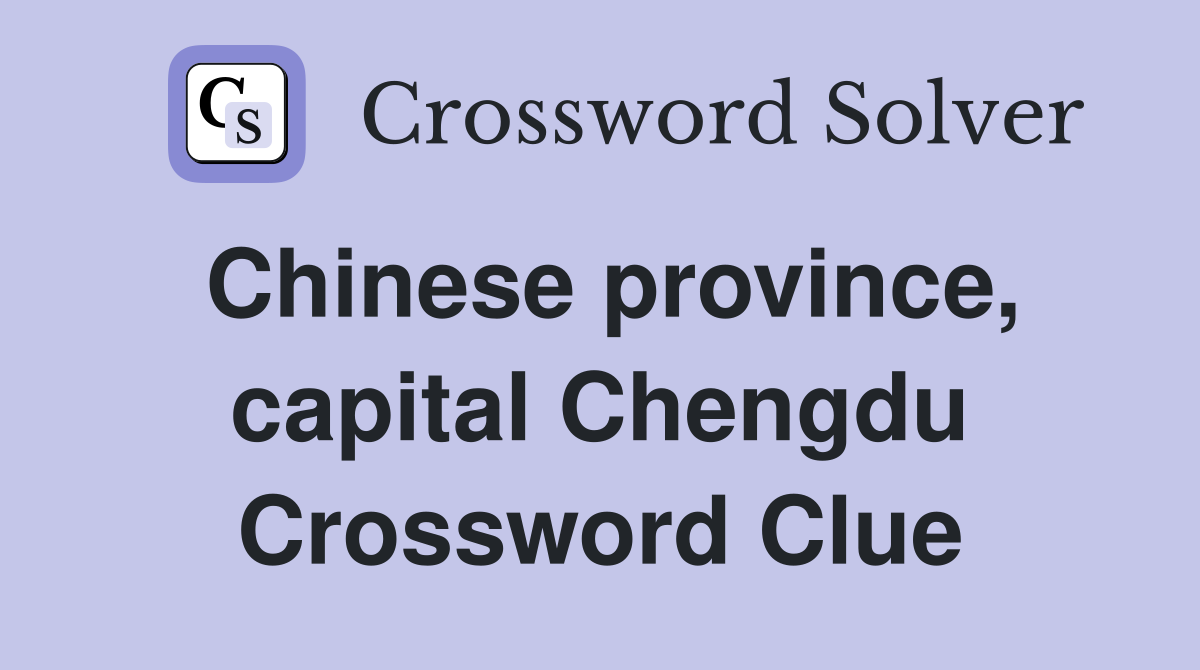 Chinese province capital Chengdu Crossword Clue Answers Crossword
