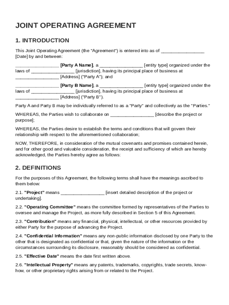 Joint Operating Agreement Template Ensure Collaborative Efforts