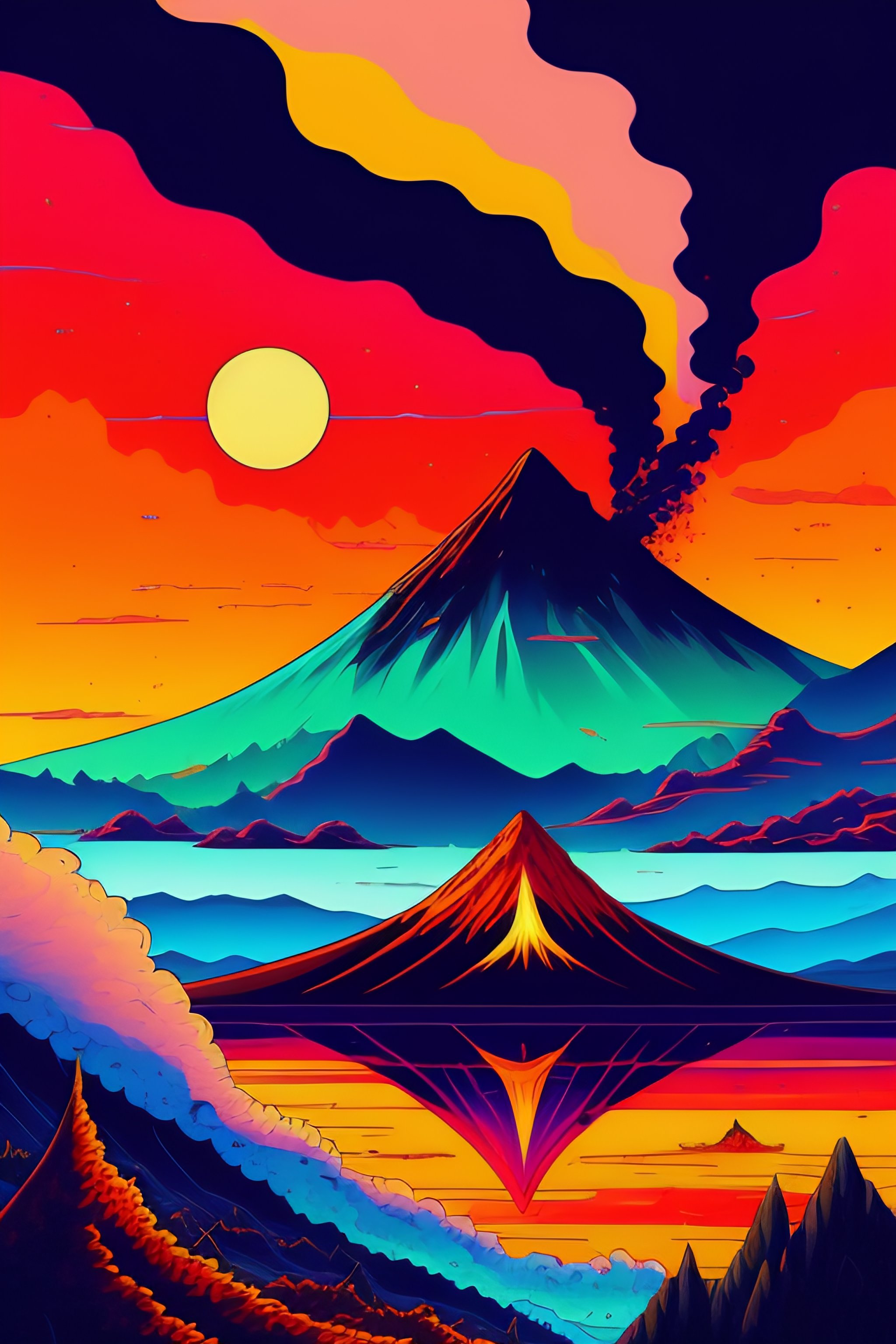 Lexica Astonishing Cell shaded landscape artwork Volcano Eruption