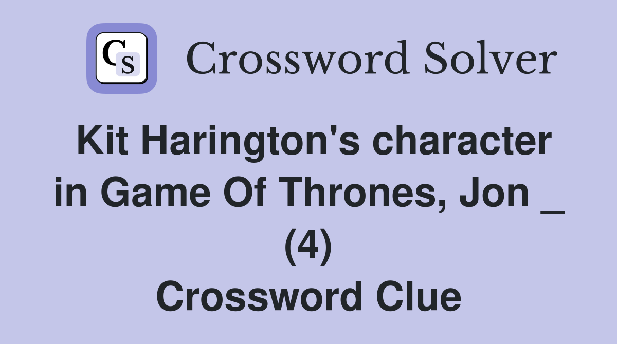 Kit Harington #39 s character in Game Of Thrones Jon (4) Crossword