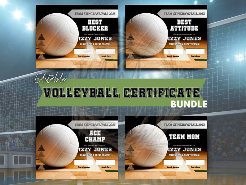 Editable Volleyball Award Certificates Award Ceremony Certificates