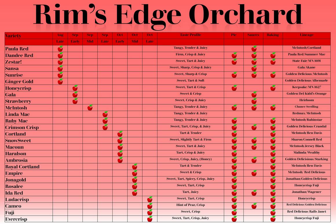 Apple Ripening calendar for Sunrise River Farm and U Pick Apple Orchard