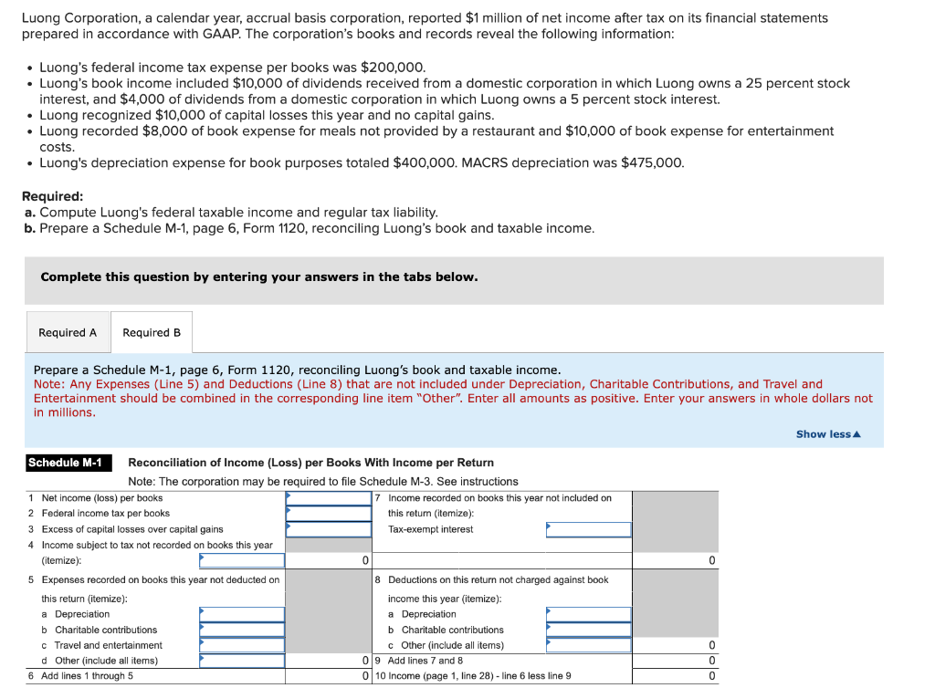 Solved Luong Corporation a calendar year accrual basis Chegg com
