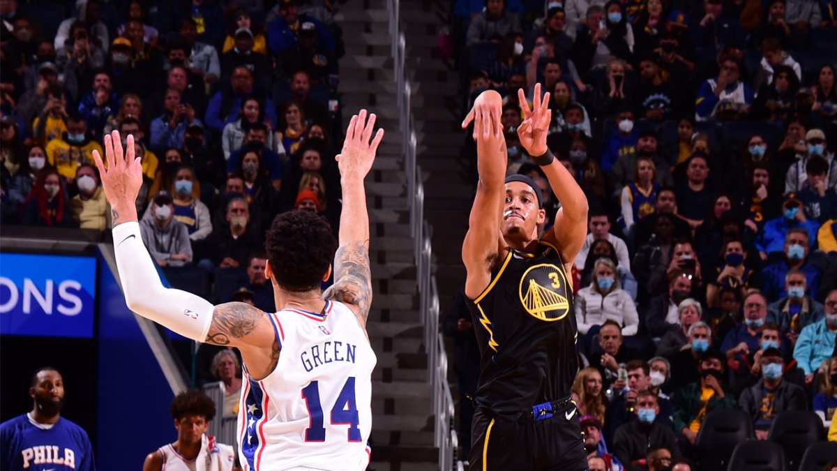 Warriors Jordan Poole hits half court buzzer beater vs 76ers NBC