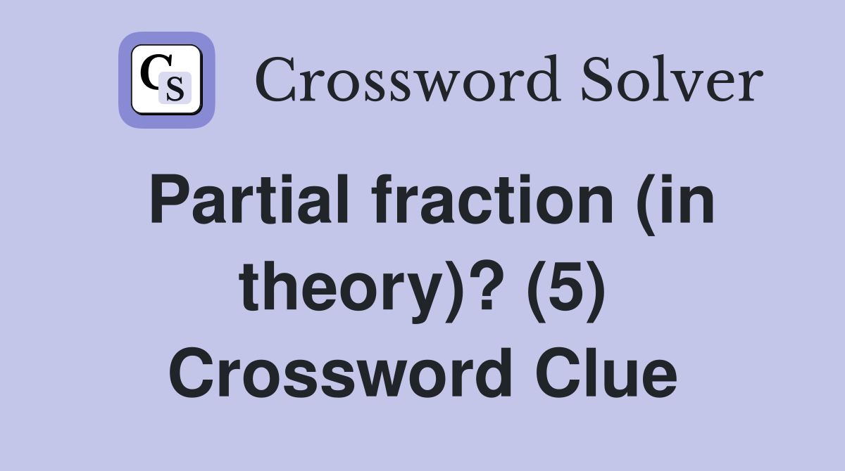 Partial fraction (in theory)? (5) Crossword Clue Answers Crossword