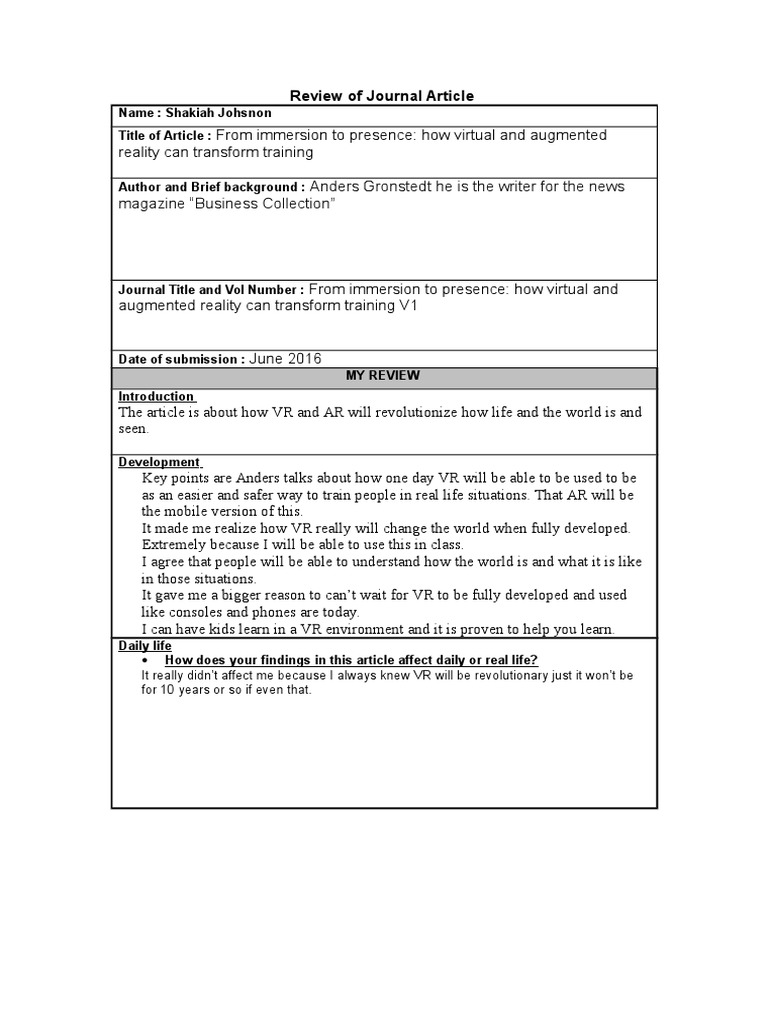 Blank Template for Journal Article Review 7 doc Sample Journal